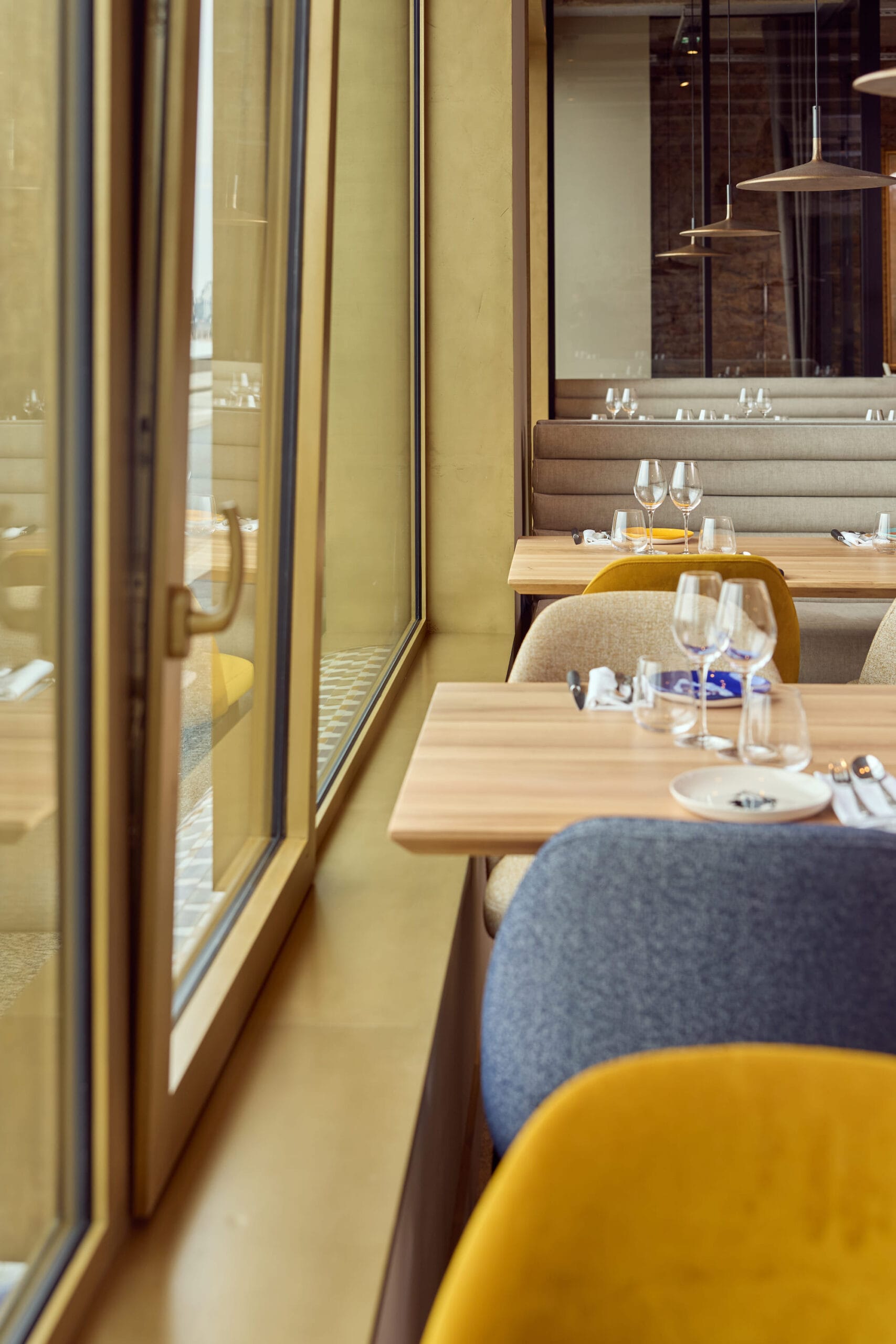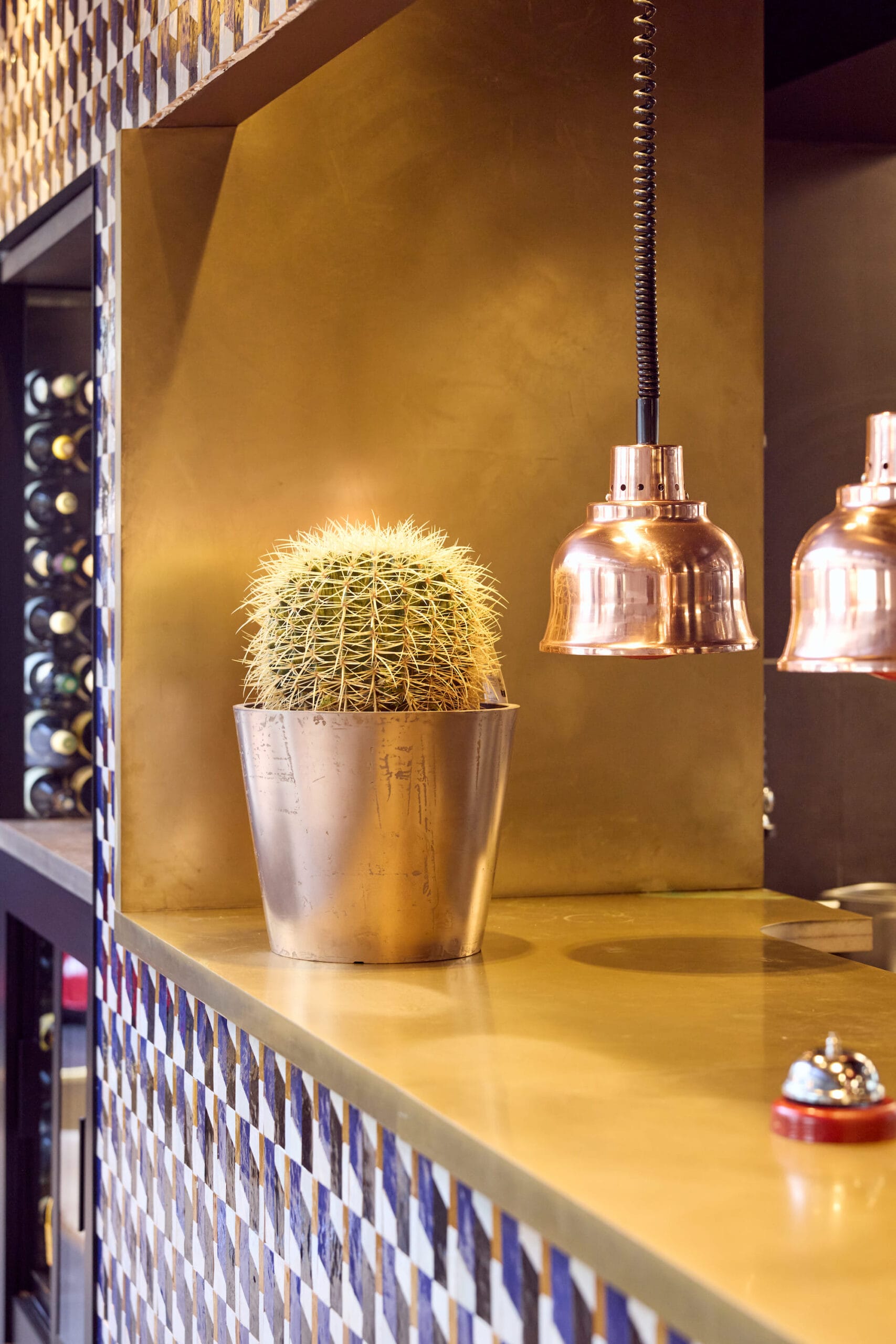Matériau noble et vivant, le laiton apporte au restaurant chaleur, élégance et une dimension haut de gamme, tout en évoluant avec le temps pour révéler toute sa richesse.